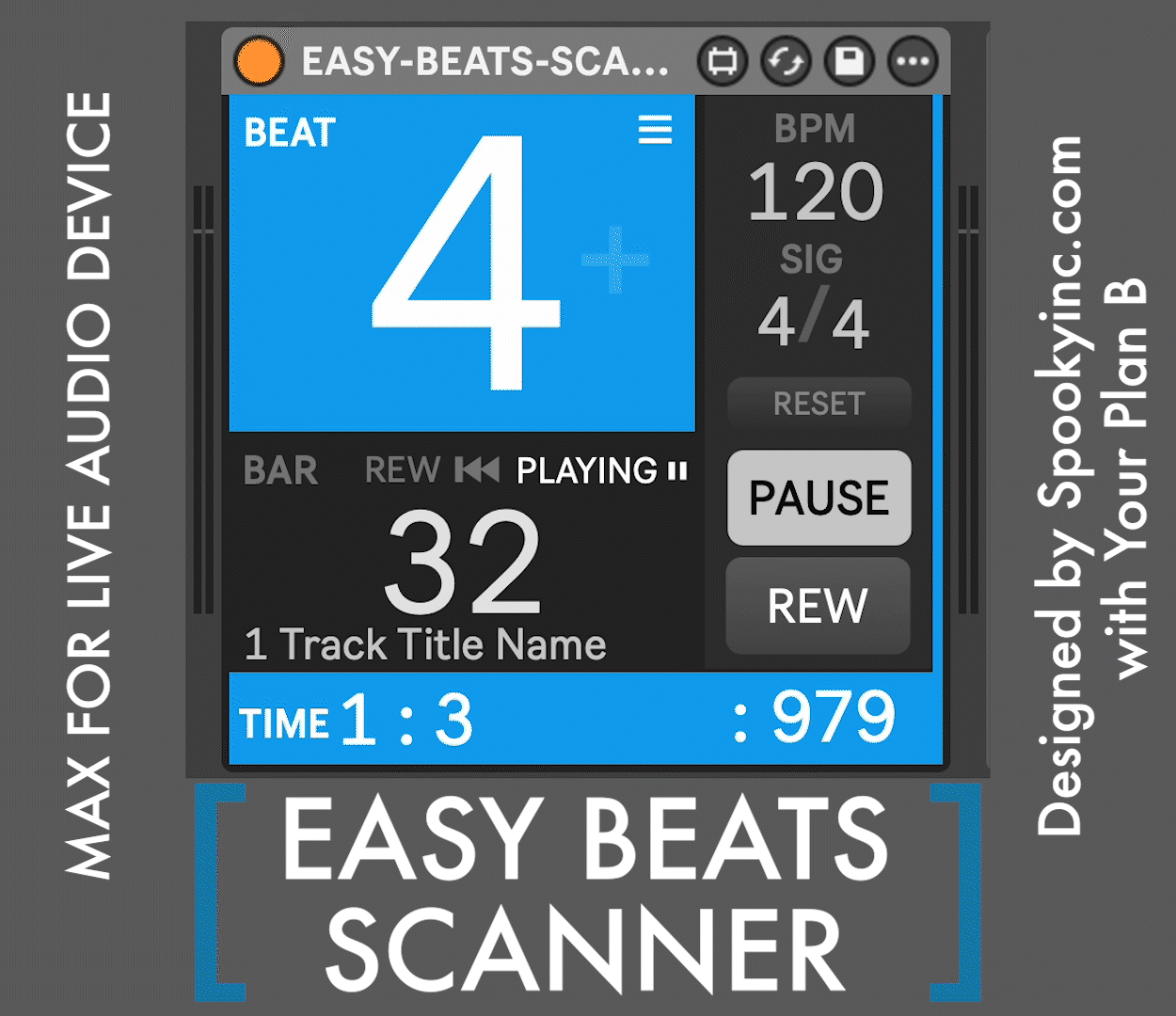 EASY BEATS SCANNER is a large font, easy to read, slim + lightweight Audio MaxforLive Device