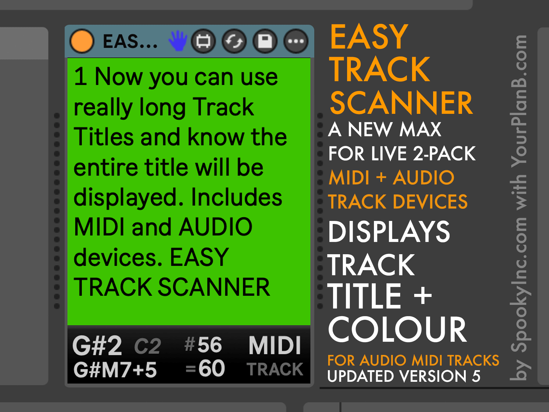 To continue our goal of improving usability in Ableton Live with our EASY TO READ M4L Series, our newest device displays the Track title in an large, easy to read font AND adds a large colour block background so you always know what track you’re working on at a glance!